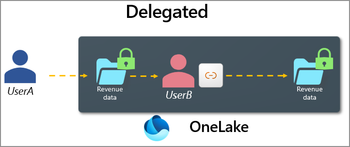 Les raccourcis utilisent deux modèles d’authentification avec la sécurité OneLake : passthrough et delegated.