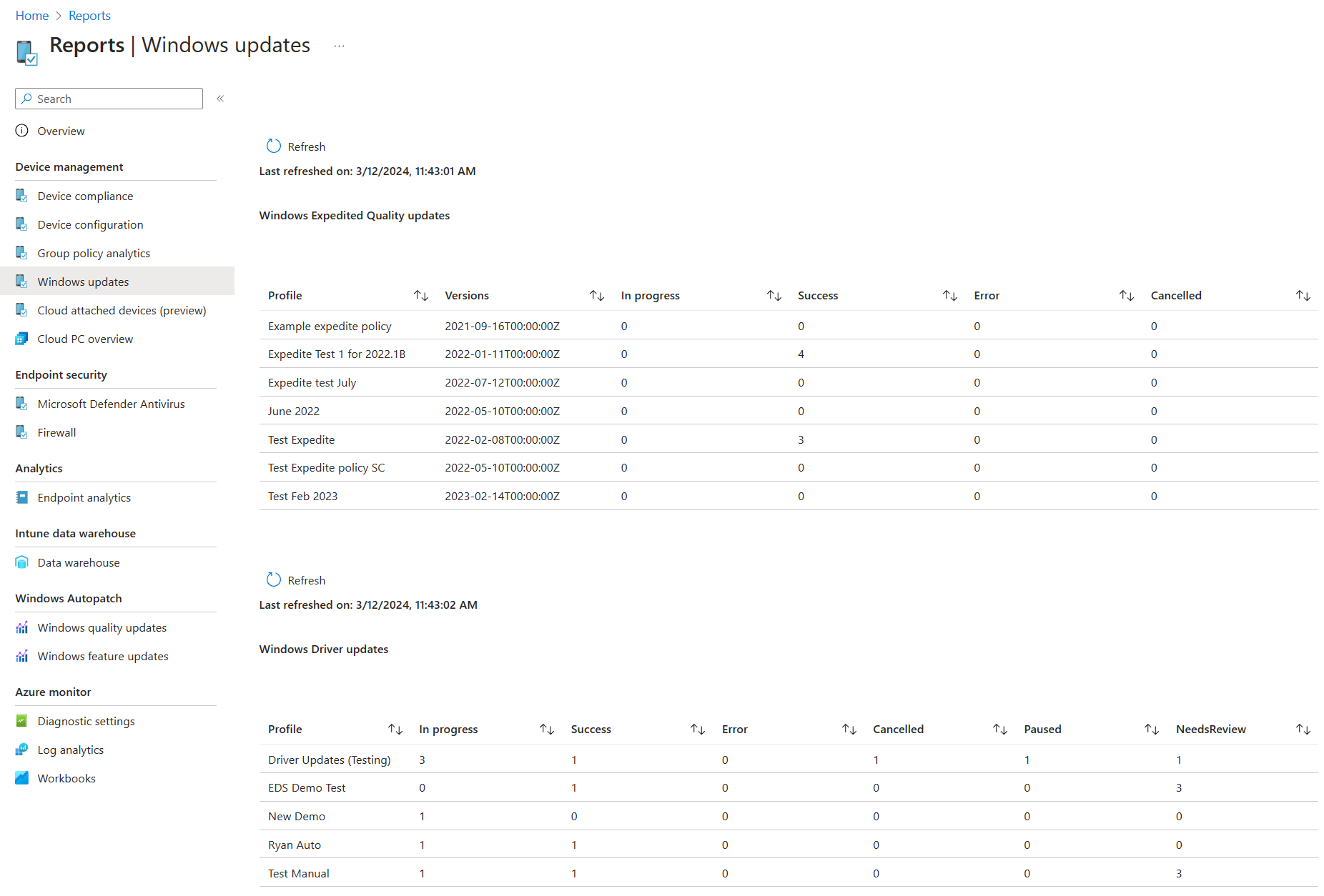 - Dans le Centre d’administration Microsoft Intune, sélectionnez Rapports>Windows Mises à jour.