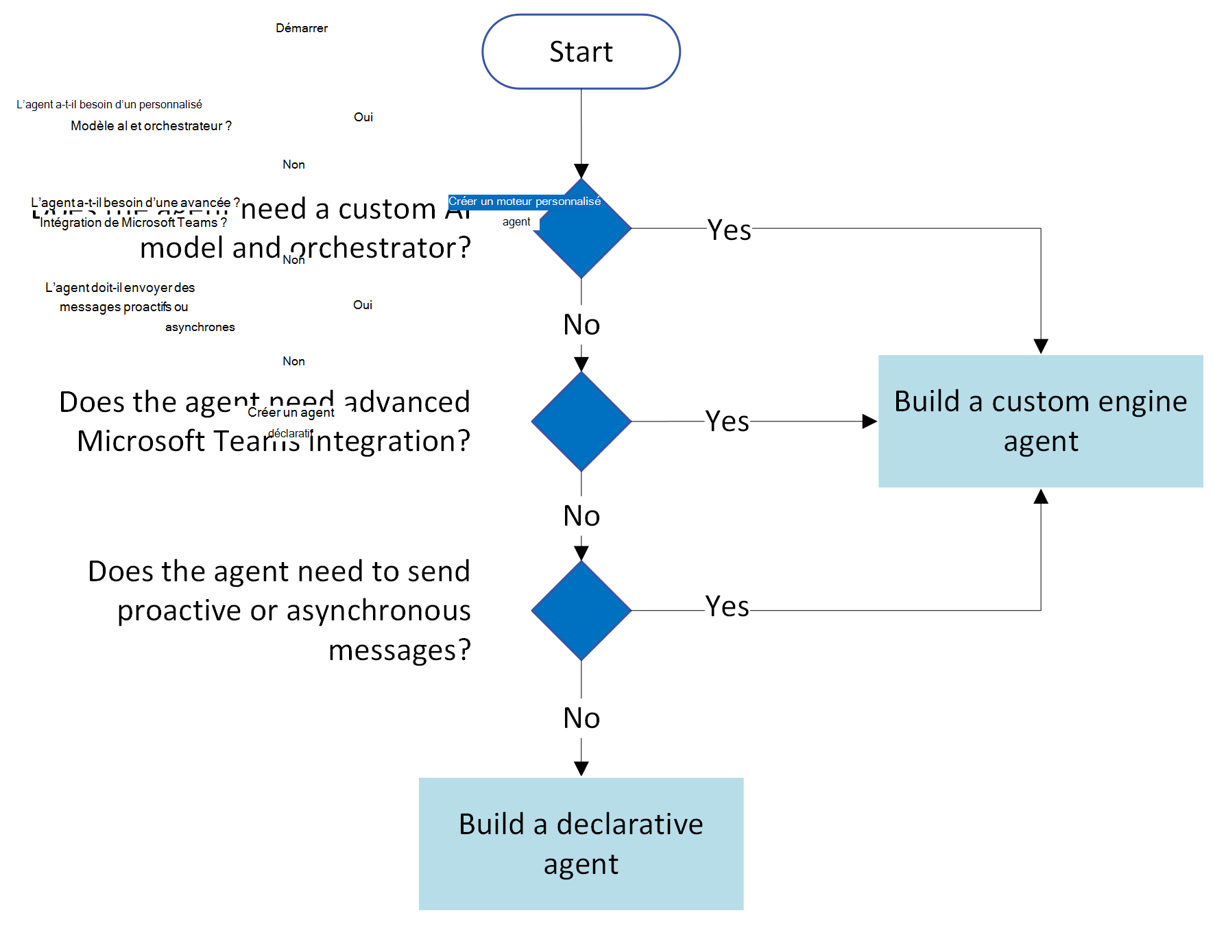 - Vous souhaitez une implémentation plus rapide ou développer un agent sans code ou à faible code à l’aide d’outils comme Copilot Studio ou vous êtes un développeur qui préfère une expérience simplifiée avec des options pro-code comme Visual Studio ou Microsoft 365 Agents Toolkit.