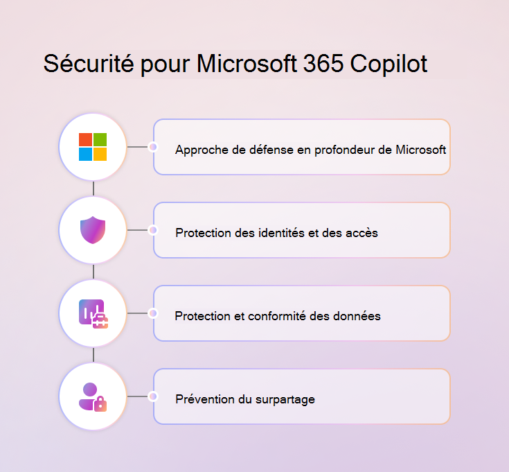 Cet article décrit l’approche de sécurité de Microsoft pour Microsoft 365 Copilot. Il n’inclut pas les étapes de déploiement ou de préparation des données.
