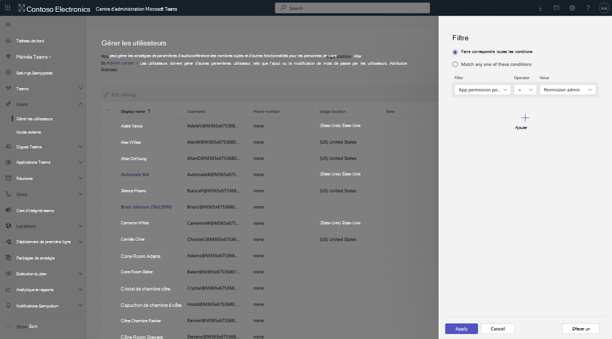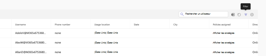 Sélectionnez le filtre situé en haut à droite de la table Gérer les utilisateurs.