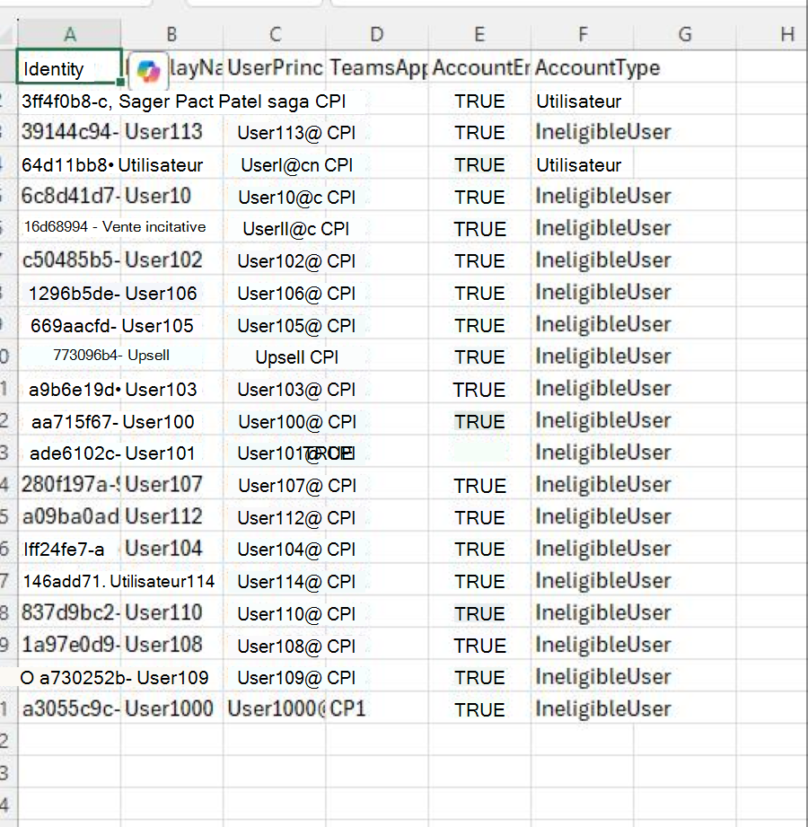 $users = Get-CsOnlineUser -Filter "TeamsAppPermissionPolicy -eq '$policyName' -and SoftDeletionTimestamp -eq$null » | Select-Object Identity, DisplayName, UserPrincipalName, TeamsAppPermissionPolicy, AccountEnabled, AccountType'Pour case activée si le nombre d’utilisateurs est égal à zéro :