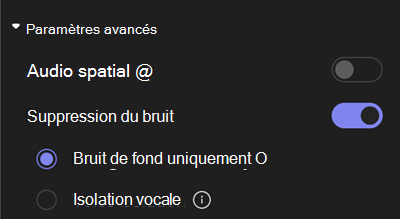 Si vous utilisez l’audio byOD (Bring Your Own Device) et les salles de réunion, nous désactiverons automatiquement l’isolation vocale.