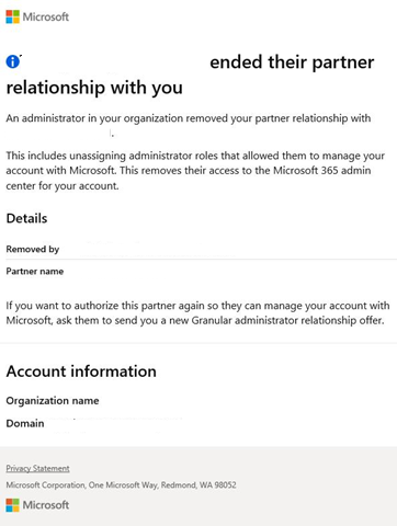 Terminer une relation d’administration granulaire avec un partenaire