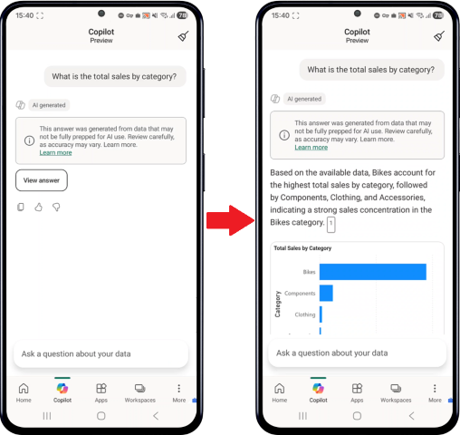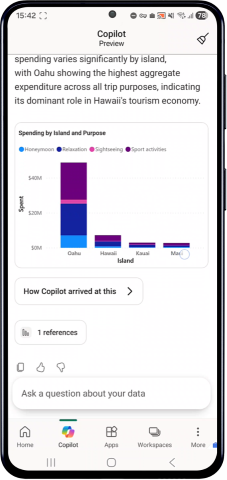 - Ouvrez Copilot dans votre application mobile Power BI.