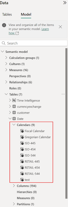 Vous pouvez également utiliser des outils externes ou la vue TMDL pour définir un calendrier. Pour plus d’informations, consultez le script TMDL.