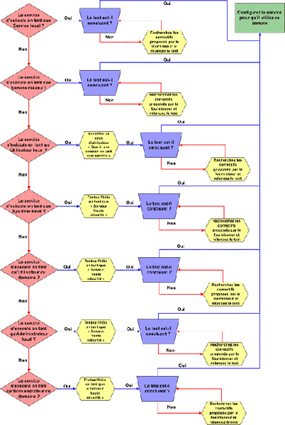 Le diagramme de la figure suivante montre les points à prendre en considération lorsque vous décidez du type de compte à utiliser pour exécuter vos services de façon sécurisée.
