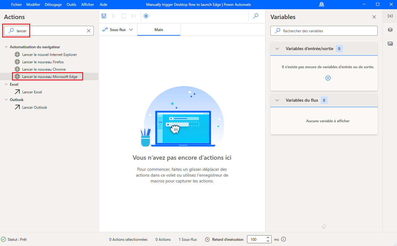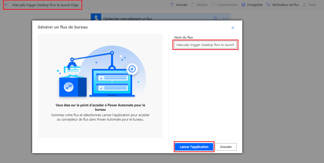Nommez votre flux Déclencher manuellement le flux de bureau pour lancer Edge.