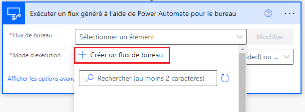 Dans le menu déroulant Flux de bureau, sélectionnez + Créer un flux de bureau.