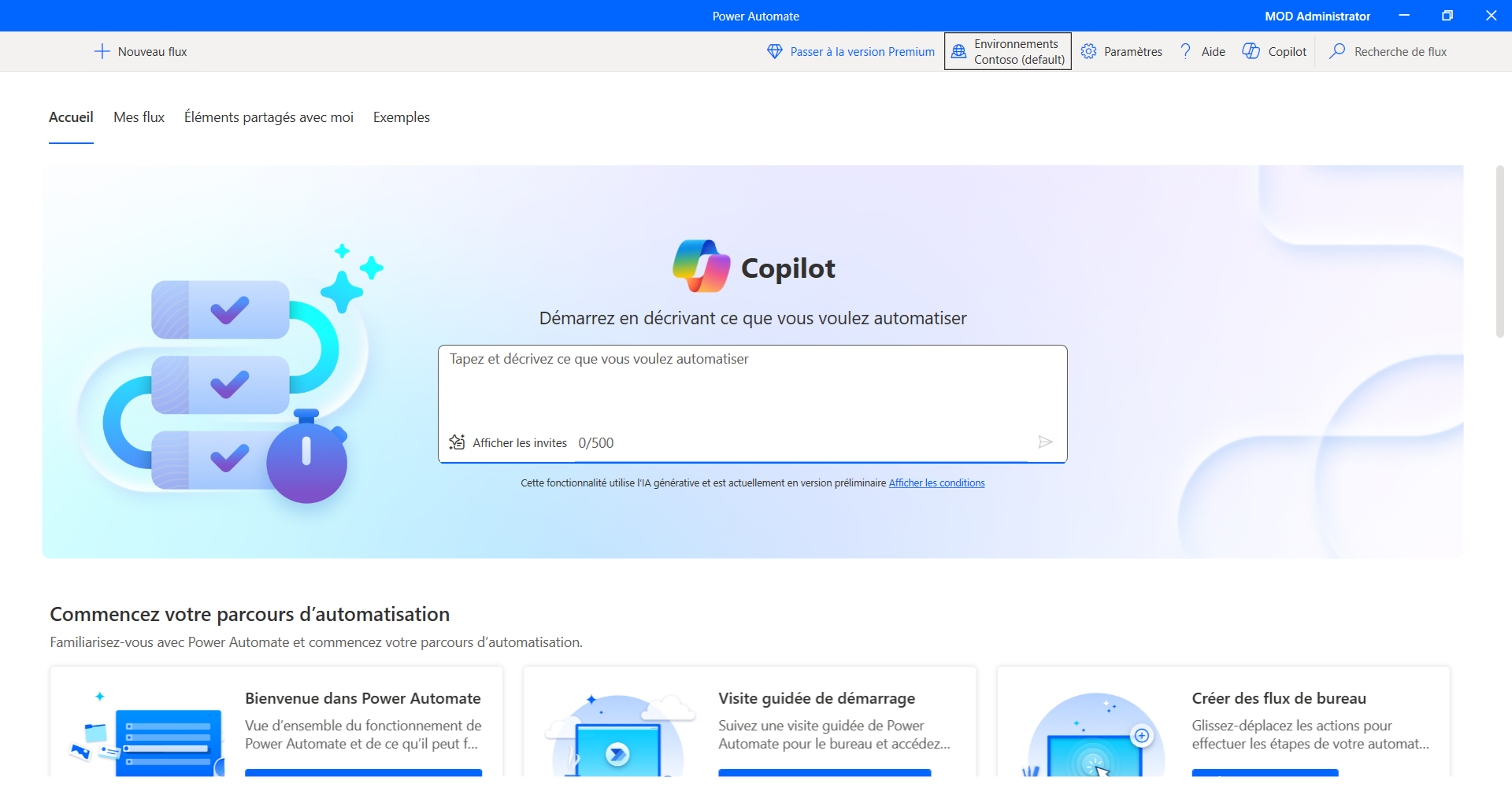 Commencez par accéder à la page Accueil de Power Automate pour le bureau.