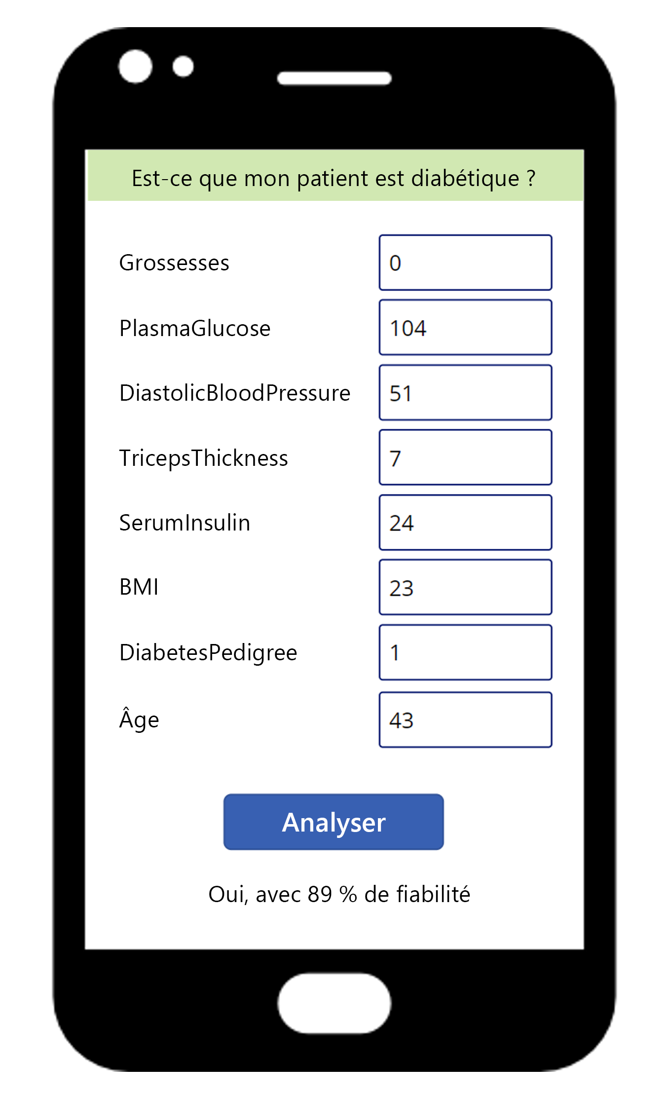 Chez Proseware, nous développons une application mobile pour aider les médecins à diagnostiquer plus rapidement les maladies chez les patients. Le médecin peut entrer les données médicales du patient dans l’application pour obtenir un diagnostic sur le patient.