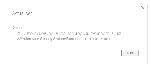 Les sections suivantes couvrent certains des messages d’erreur les plus courants que vous pouvez rencontrer dans Power BI.
