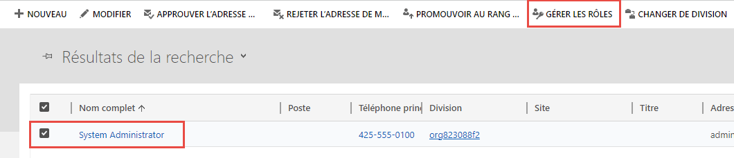 Choisissez votre utilisateur, puis cliquez sur Gérer les rôles en haut de la page.