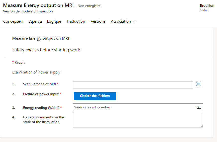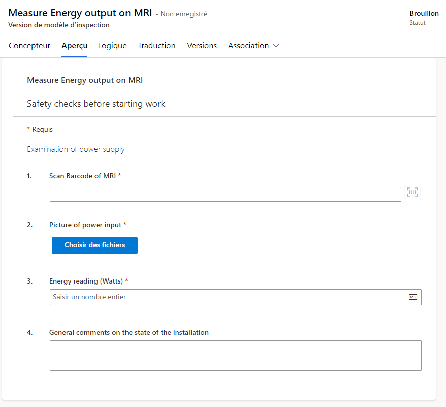 Dans Dynamics 365 Field Service, les inspections sont des formulaires numériques permettant à un technicien de répondre efficacement à des questions dans le cadre d’un ordre de travail.