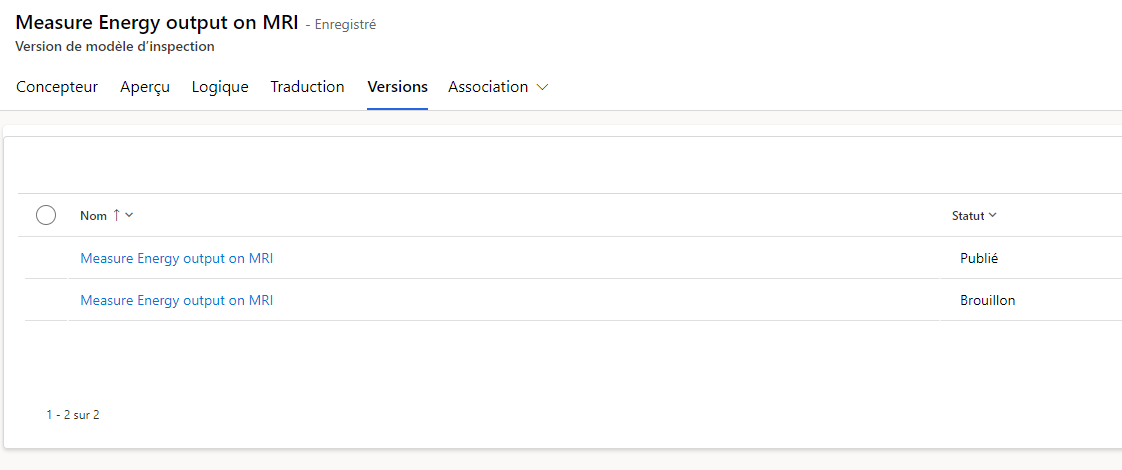 Après avoir créé l’inspection, sélectionnez Publier dans la barre de commandes. Une fois publié, le modèle d’inspection est en lecture seule et vous ne pouvez pas le supprimer. Cependant, vous pouvez modifier le modèle, puis le republier à l’aide du bouton Réviser.
