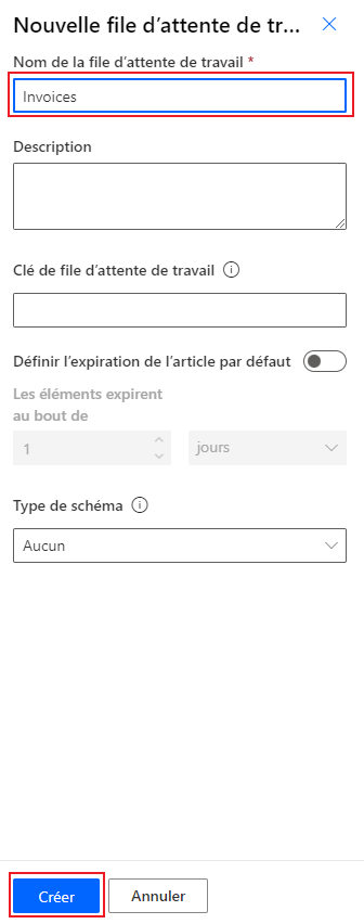 Dans le volet Nouvelle file d’attente de tâches, saisissez les informations suivantes :
