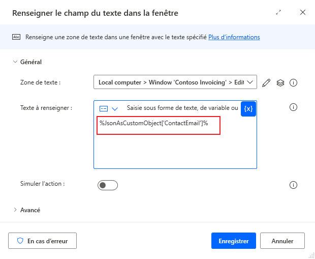 %JsonAsCustomObject['ContactEmail']% - Zone de texte Montant :