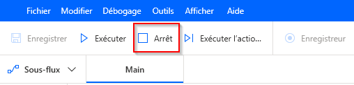 Revenez au concepteur de flux de bureau et cliquez sur le bouton Arrêter en haut de la fenêtre.