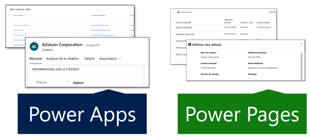 De plus, les sites web Power Pages peuvent étendre les applications Microsoft Power Apps basées sur Microsoft Dataverse. Ensuite, elles peuvent afficher les données et la logique métier et les rendre disponibles sur votre site web à un public externe, selon les autorisations des utilisateurs.
