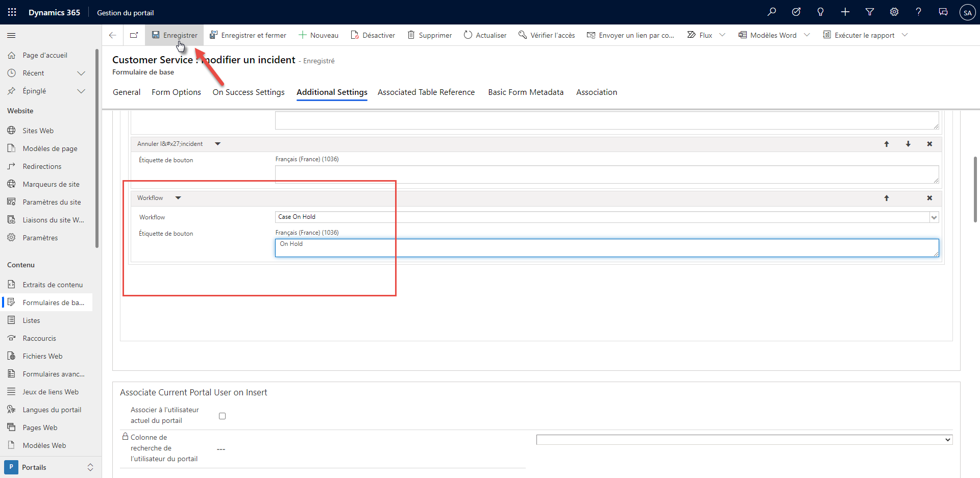 Une fois le flux de travail créé, vous pouvez ajouter un bouton d’action de flux de travail au formulaire de base Incident, puis configurer ce bouton de manière à appeler le flux de travail.