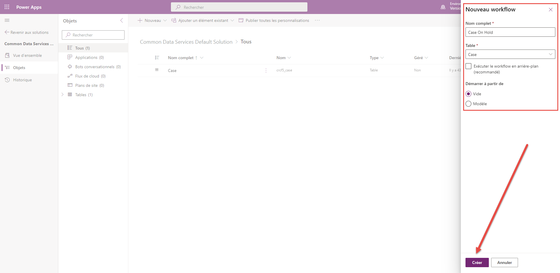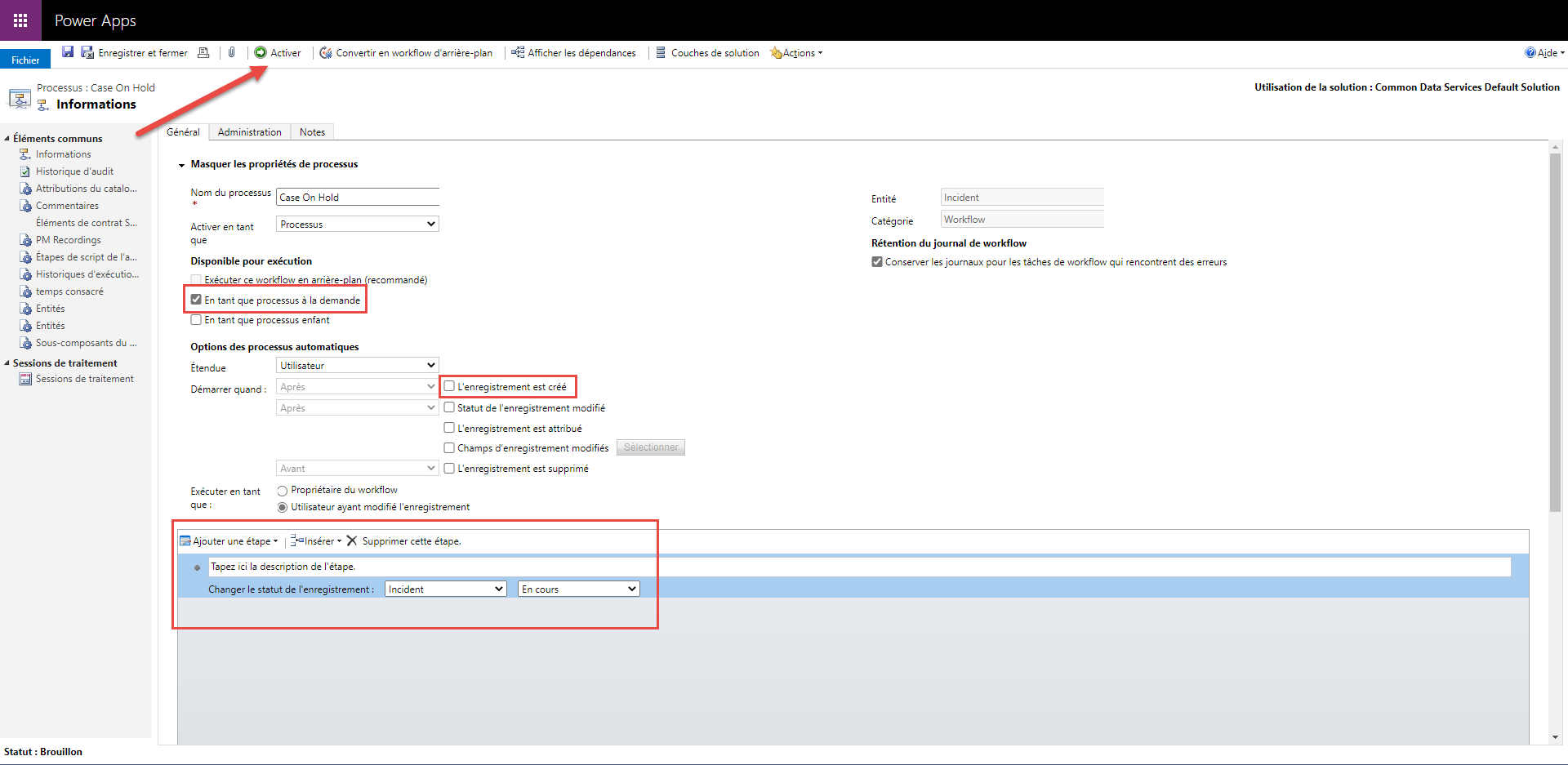 Créer un flux de travail en temps réel pour la table Case qui définit le statut de l’incident sur En attente