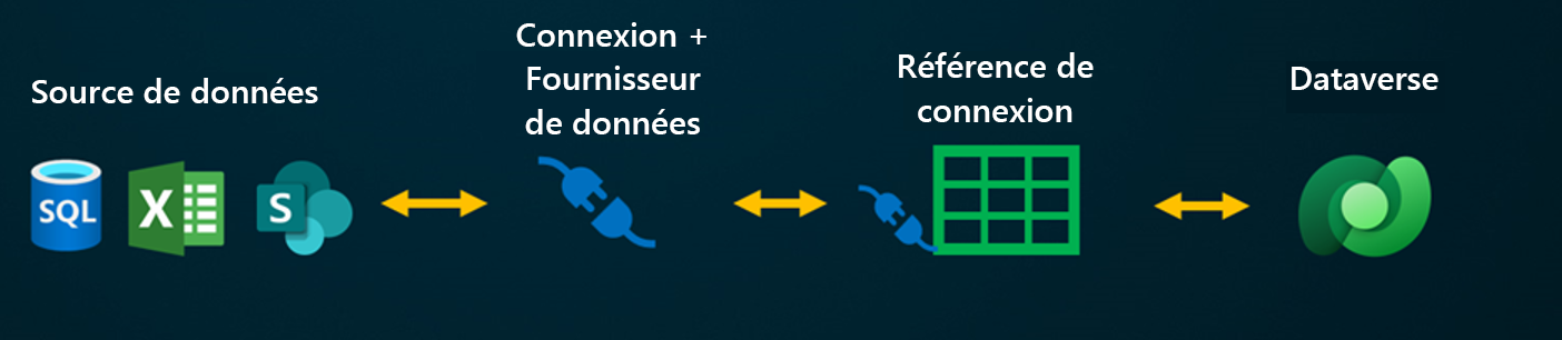 Les connecteurs vous permettent de tirer profit de Microsoft Power Platform sans transférer vos données. Power BI, Power Apps et Power Automate utilisent des connecteurs qui vous permettent d’analyser, de manipuler et d’automatiser les données et les services.