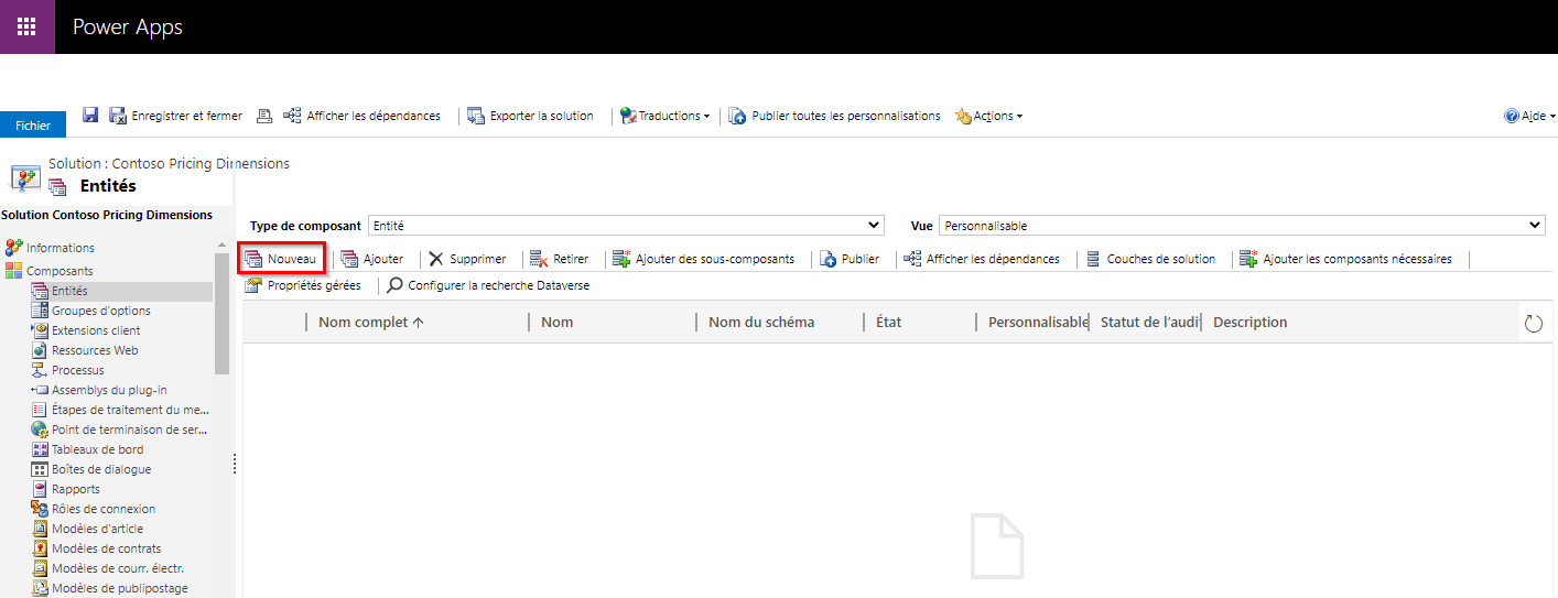 Créer des champs et des entités personnalisés comme dimensions de tarification