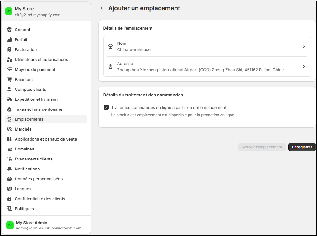 Si le magasin sert de service d’exécution, le champ Est un service d’exécution est sélectionné. Ce champ est synchronisé depuis Shopify.