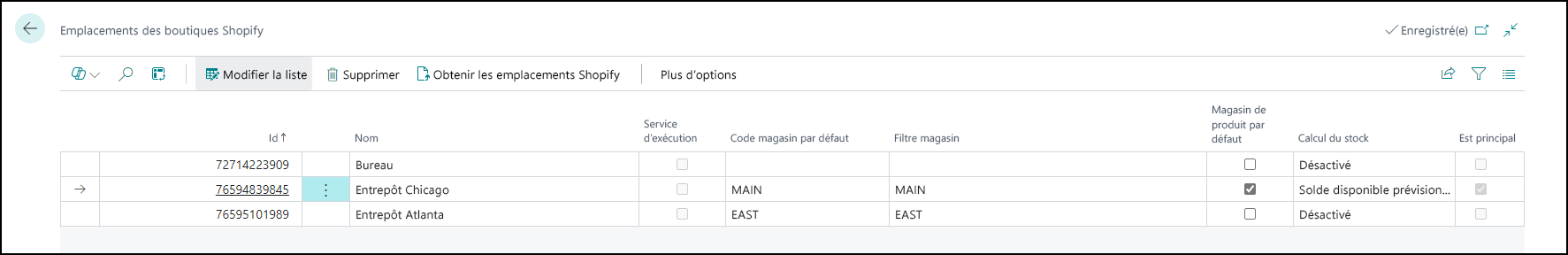 Après avoir créé tous les magasins Shopify souhaités, vous pouvez les synchroniser avec Business Central, puis les mapper sur les magasins Business Central de la manière suivante :