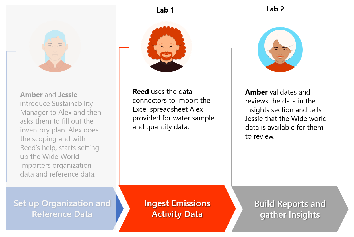 In this exercise, Reed Flores, an IT admin for Wide World Importers, uses the water sample and quantity Microsoft Excel spreadsheets that Alex Serra, emissions analyst, sources. The spreadsheets contain water sample data and water quantity data collected for 2022. Reed uses the Microsoft Sustainability Manager connector functionality to import from Excel spreadsheets and then reviews other connectors that are available for future purposes. Reed uses the built-in Microsoft Power Query functionality to transform the data to match Microsoft Sustainability Manager's data schema and look for other potential issues, such as case-sensitive data fields.