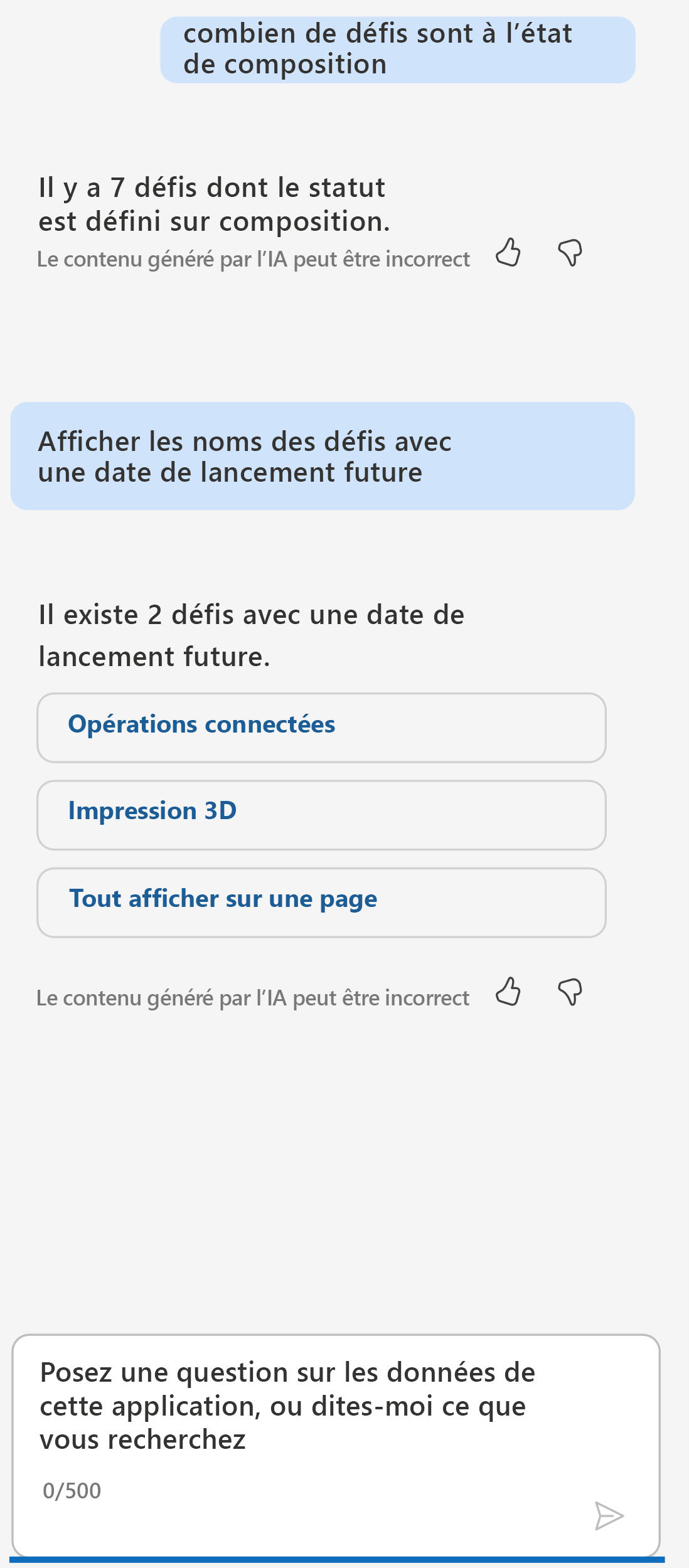 Copilot pour les applications pilotées par modèle aide les utilisateurs à poser des questions sur les données dans l’application. Il fournit des insights optimisés par l’IA et une navigation intuitive qui peuvent améliorer la productivité.