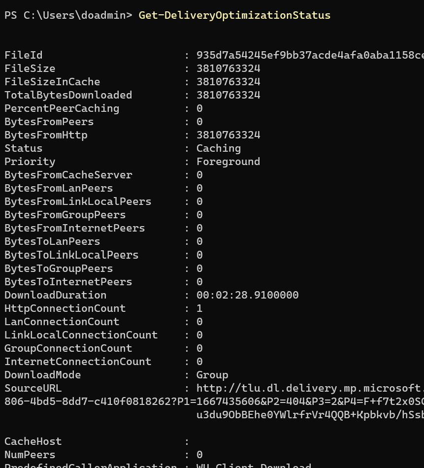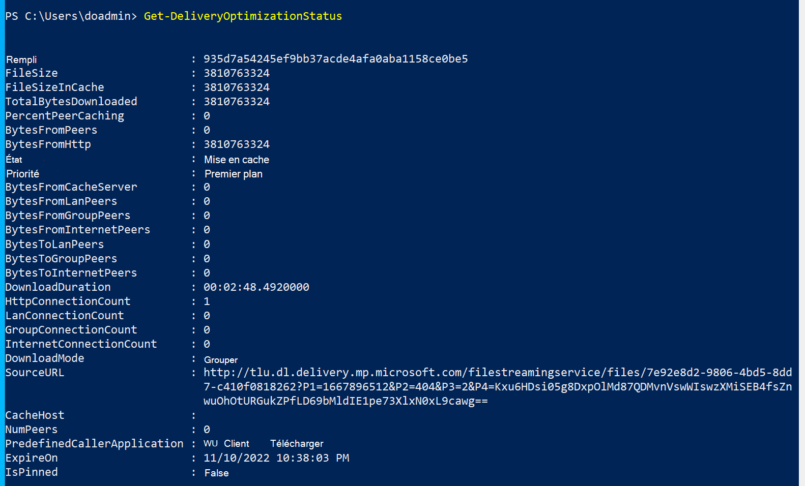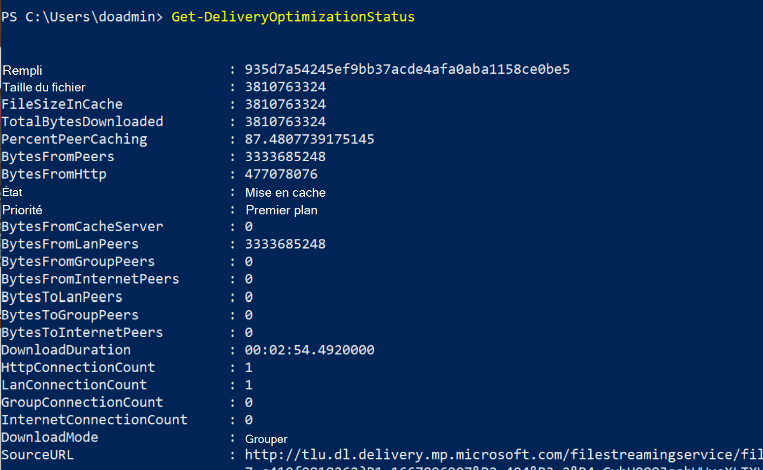 - Ouvrez la console PowerShell en tant qu’administrateur. Exécutez « Get-DeliveryOptimizationStatus ».