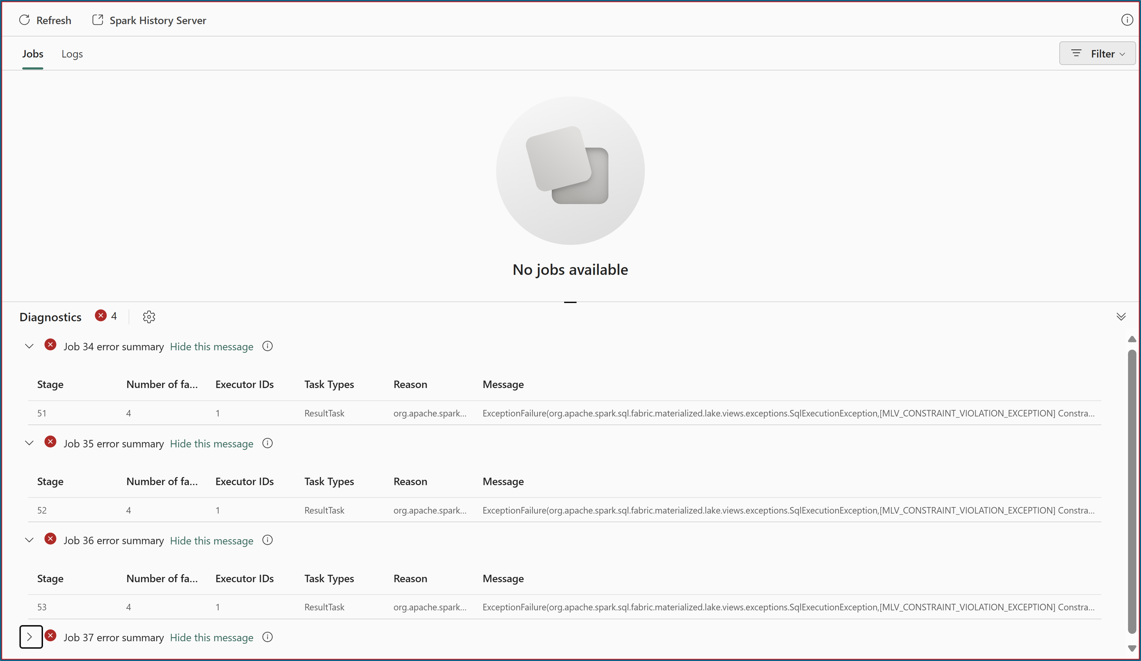 Select Detailed logs to open Monitor Hub and review Spark error logs.