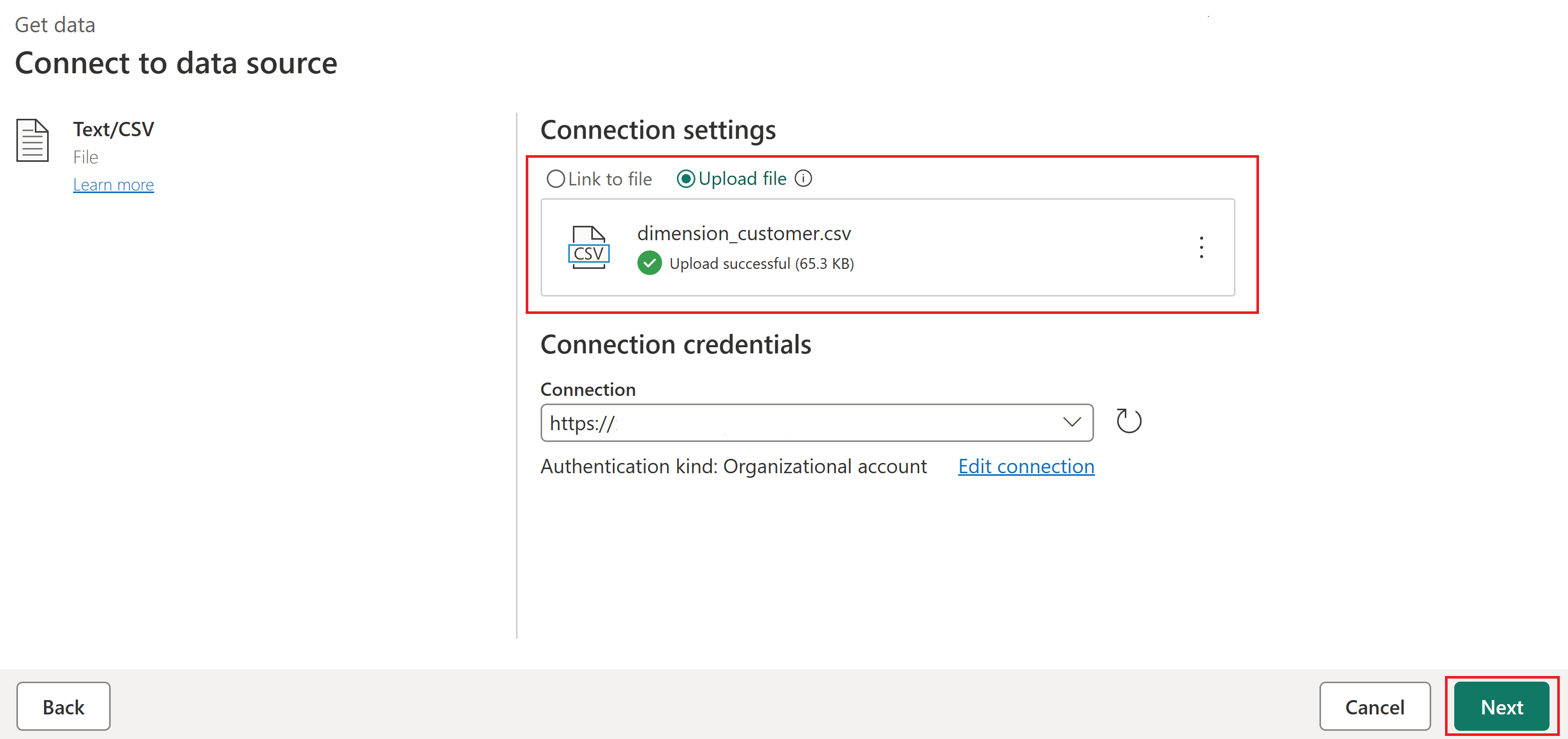 Browse or drag and drop the dimension_customer.csv file that you downloaded in step 1. After the file is uploaded, select Next.