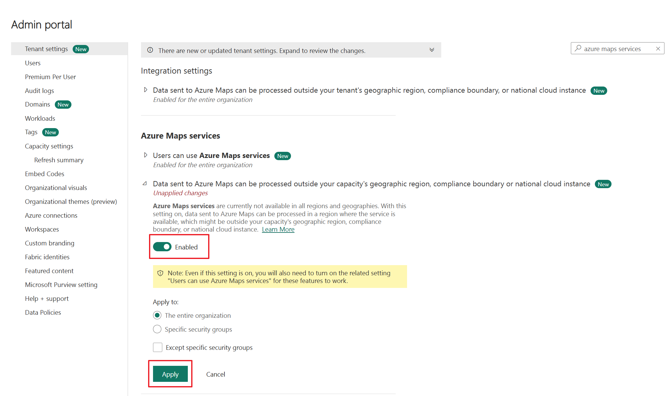 Enable Maps in tenant settings