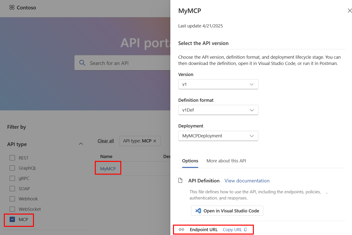 Detección de servidores MCP mediante el portal del Centro de API
