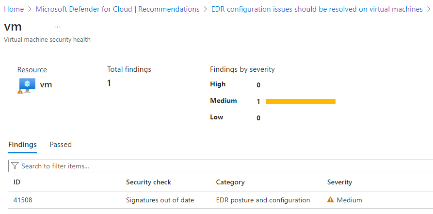 Explore en profundidad la comprobación de seguridad para ver los pasos de corrección proporcionados con la recomendación y complete la corrección en Defender para punto de conexión o en la máquina afectada.