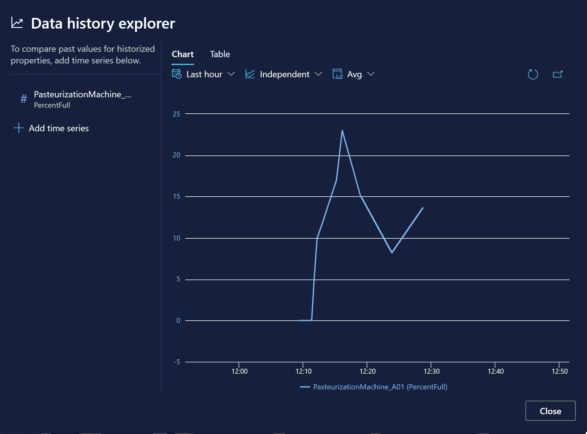Para obtener información más detallada sobre el uso del explorador de historial de datos, consulte Validación y exploración de propiedades historizadas.