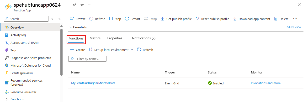 - Seleccione la función EventGridTriggerMigrateData.
