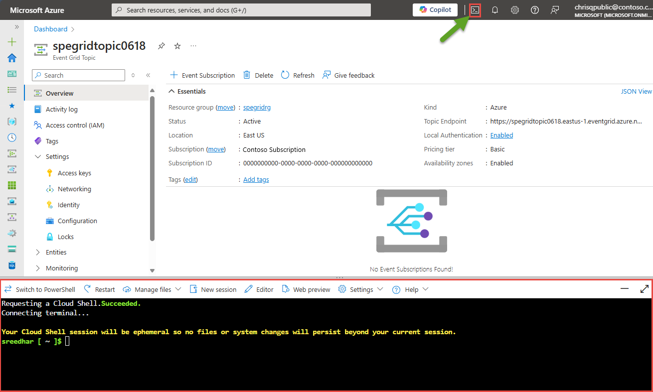 En Cloud Shell, ejecute los comandos desde Azure PowerShell o la CLI de Azure en la sesión de Bash o PowerShell.