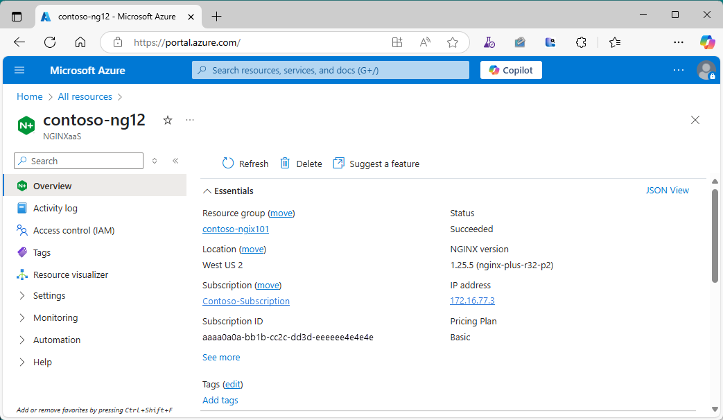 Después de crear el recurso NGINXaaS en Azure Portal, es posible que tenga que obtener información sobre él o cambiarlo.