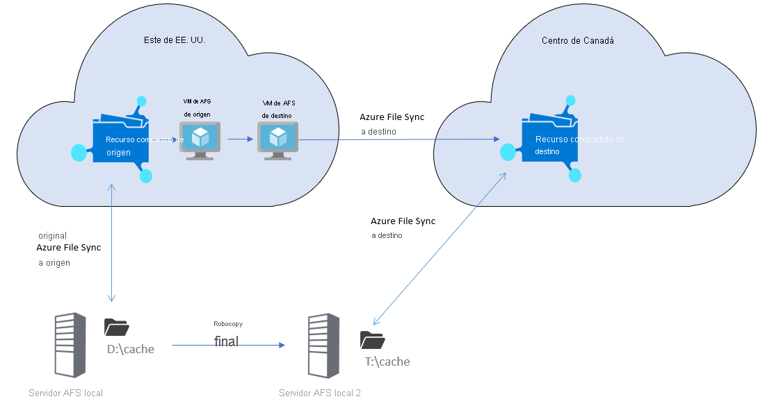 Lo único que deberá hacer es configurar un nuevo servidor de archivos local y, a continuación, conectar el nuevo servidor a Azure File Sync y el nuevo punto de conexión en la nube. A continuación, use SMS para migrar desde el servidor de origen al servidor de destino.