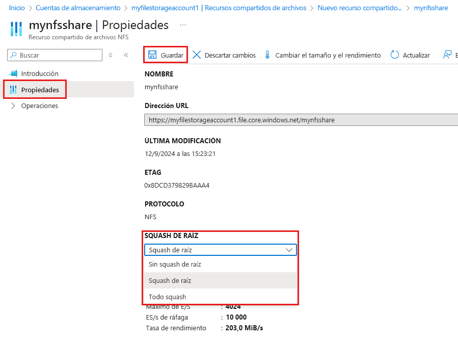 Configurar raíz squash en un recurso compartido de archivos NFS existente (Microsoft.Storage)