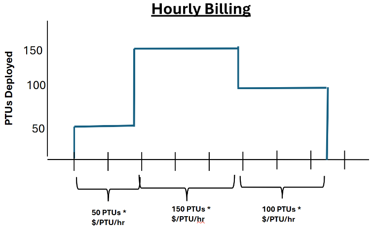 Si el tamaño de las implementaciones aprovisionadas dentro del ámbito de una reserva supera la cantidad de la reserva, el exceso se cobra según la tarifa horaria. Por ejemplo, si las implementaciones que ascienden a 250 PTU existen dentro del ámbito de una reserva de 200 PTU, se cobrarán 50 PTUs cada hora hasta que los tamaños de implementación se reduzcan a 200 PTU o se cree una nueva reserva para cubrir los 50 restantes.