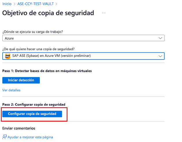 Configurar la copia de seguridad de la base de datos SAP ASE (Sybase)