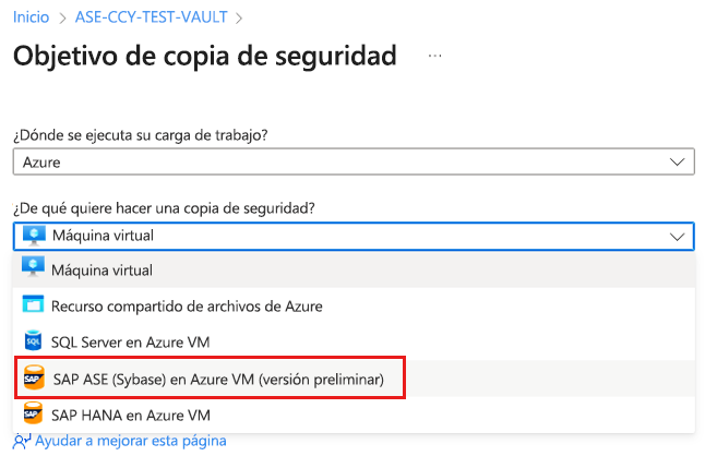 En este artículo se describe cómo configurar la copia de seguridad de bases de datos de SAP Adaptive Server Enterprise (ASE) (Sybase) (que se ejecutan en Azure Virtual Machines) mediante Azure Portal.