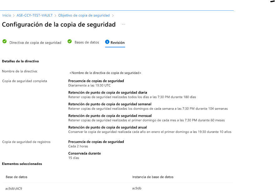 - Vaya a Directiva de Backup completa para ver la configuración de la directiva.