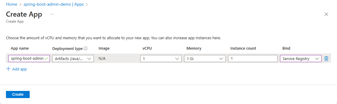 cd <path-to-maven-or-gradle-source-root> az spring app deploy \ --resource-group <resource-group-name> \ --service <Azure-Spring-Apps-service-instance-name> \ --name spring-boot-admin \ --source-pathAsigne un punto de conexión público.