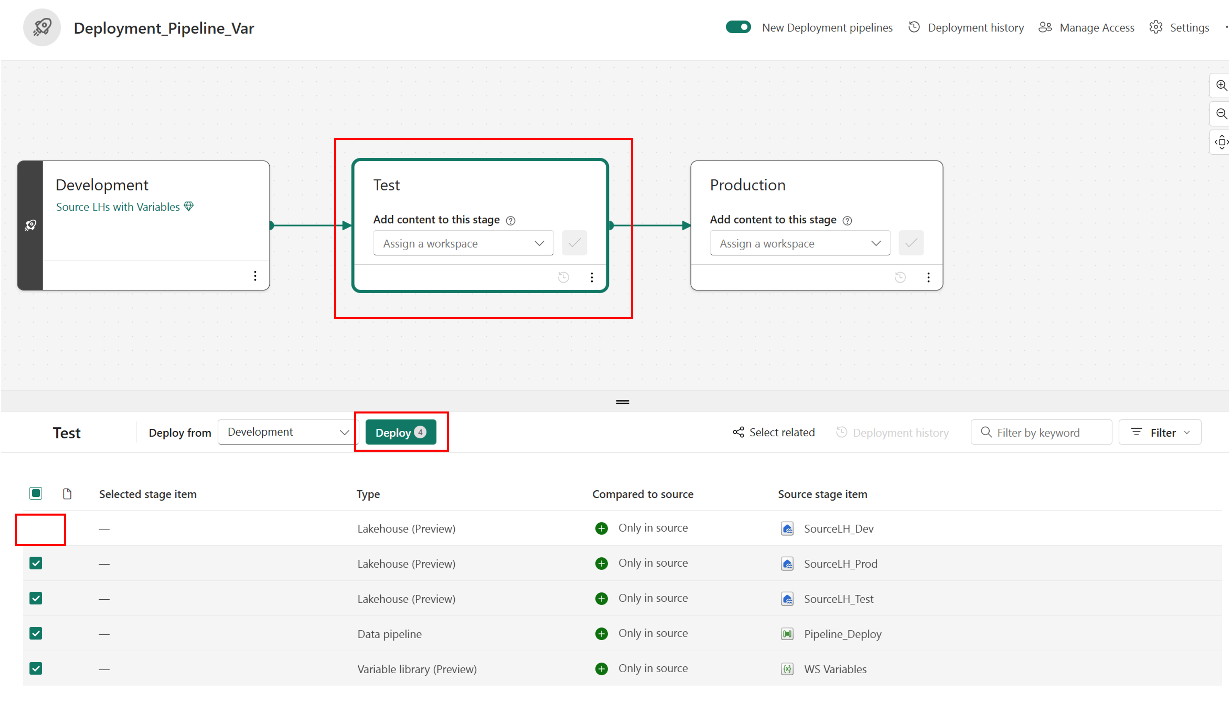 En el área de trabajo LHs de origen con variables , vaya a Pipeline_Deploy.
