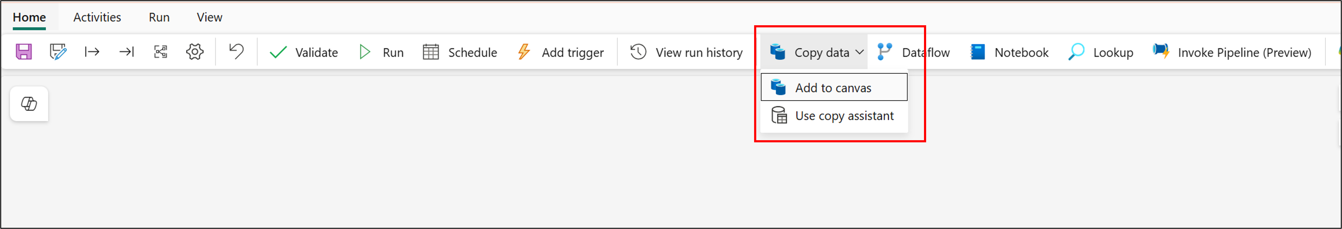 En el lienzo, seleccione Copiar datos para que el foco esté en Copiar datos.